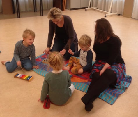 In deze peutergroep worden steeds meer spelvormen gecreëerd. Al spelenderwijs worden de kinderen in aanraking gebracht met alle elementen van de muziek: hoog – laag, sterk – zacht, snel – langzaam, enz. We worden met z’n allen dieren, zoals beren en muizen, vogels en olifanten, noem maar op. Daarnaast gaan we met sprookjesfiguren, zoals Roodkapje, kabouters en elfjes aan de slag. In de Sinterklaas tijd worden we zelfs Sinterklaas en Zwarte Piet en steekt het paard zijn hoofd om de deur heen. In de wintertijd gaan we met sneeuw en ijs spelen en maken we een sprookjesspel. In het voorjaar trekken we er al zingend op uit om de wereld opnieuw te ontdekken. We zingen, we spelen, we dansen, we spelen toneel en spelen op allerlei eenvoudige instrumentjes aan het einde van elke les: de fluitjes, met de samba's, de bellenkransen, de ritmestokjes, de trommels, de klokjes-carrousels, de xylofoontjes, de bellen, de mondharmonica's, de accordeons, de grote trommels enz. Er wordt steeds meer gebruik gemaakt van allerlei soorten instrumentjes. De sfeer in deze groep wordt nu gekenmerkt door groot enthousiasme. Ook hier is het elke week weer één groot feest!